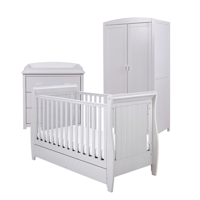 For parents who want a chic nursery that will last for years to come, our three-piece Stella room set with sleigh cot bed is the ideal option. This set is sure to become a treasured addition to your family’s life thanks to its timeless style and flexible functionality.