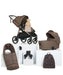 This bundle includes: Ocarro 2 Pushchair, Ocarro 2 Carrycot, Ocarro 2 Footmuff, Cable Knit Blanket, Teddy Bear Soft Toy, Luxe Minimalist Backpack, Car Seat Adaptors - Cybex/Maxi-Cosi, Universal Cup Holder.