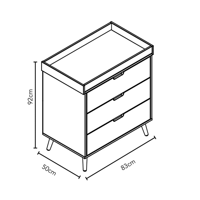 The Maya changing unit is the perfect storage companion, featuring three 34L capacity soft-close drawers with recessed handles that enable you to easily put away and quickly locate your little one’s belongings. On top of the unit is a changing area capable of fitting a changing mat up to 80 x 46.5cm. Once the changing area is no longer required it can be removed to create a stylish, flat-top chest of drawers that can be used for years to come.